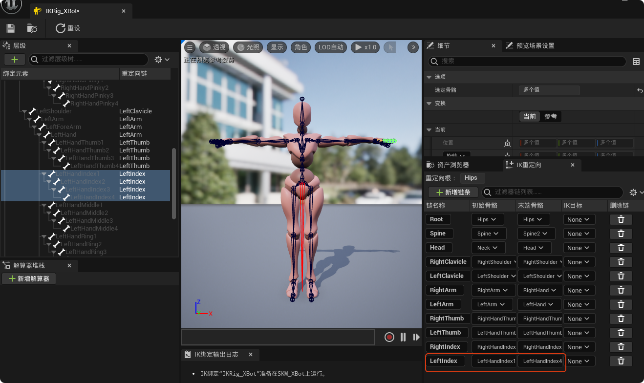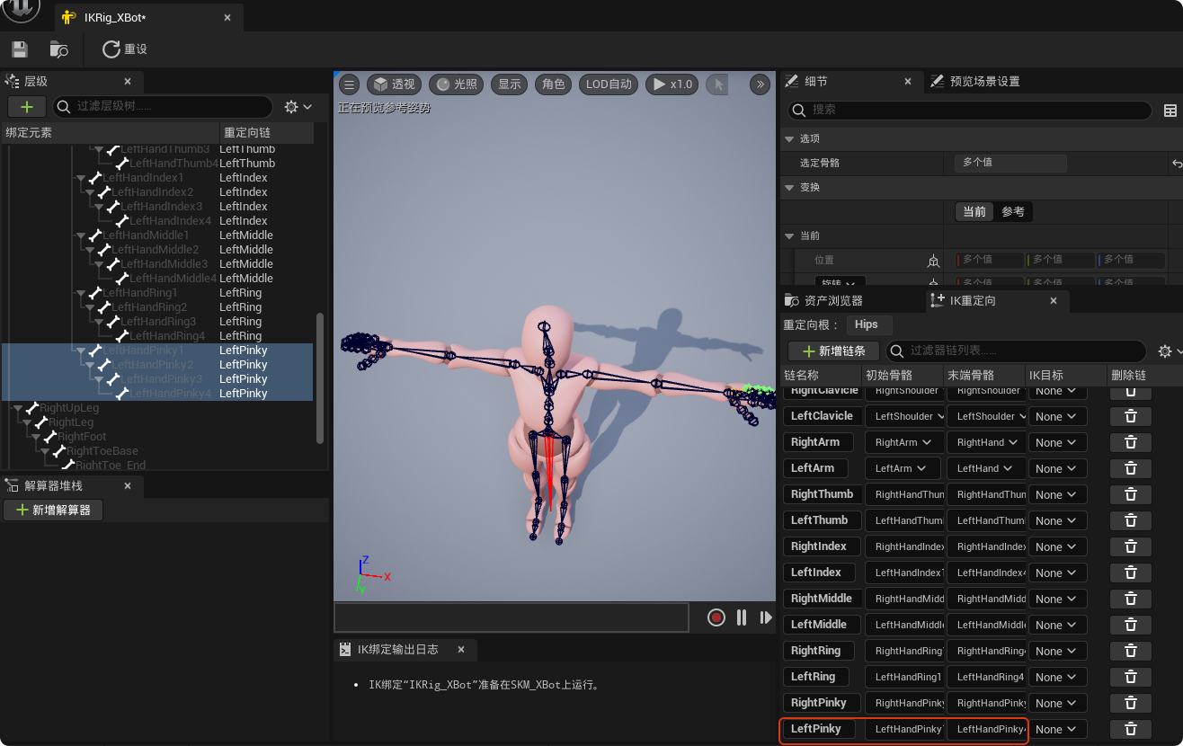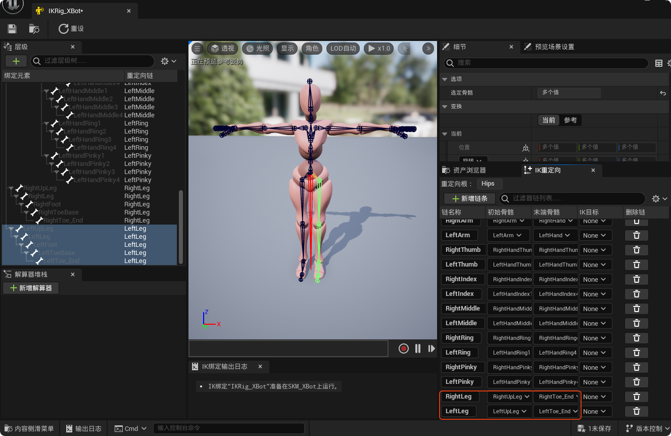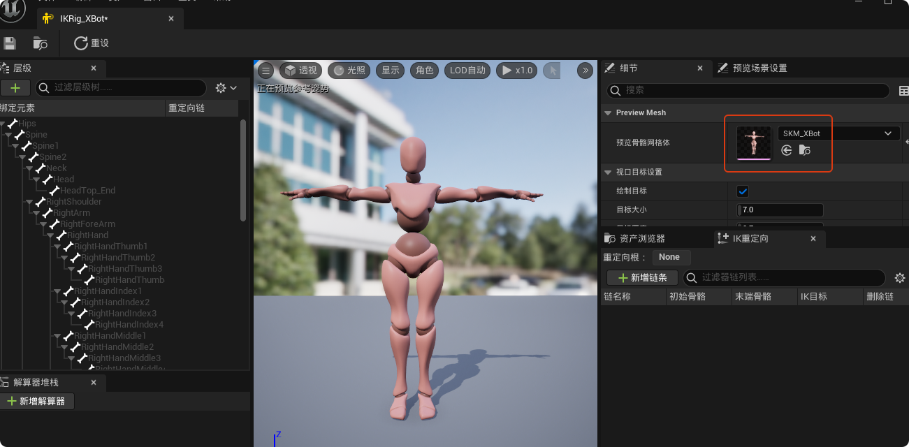 打开"IKRig_XBot",预览骨骼网格体选择"XBot"