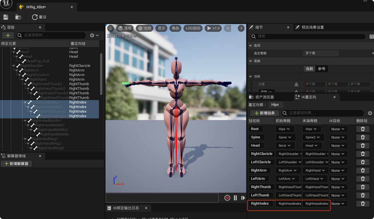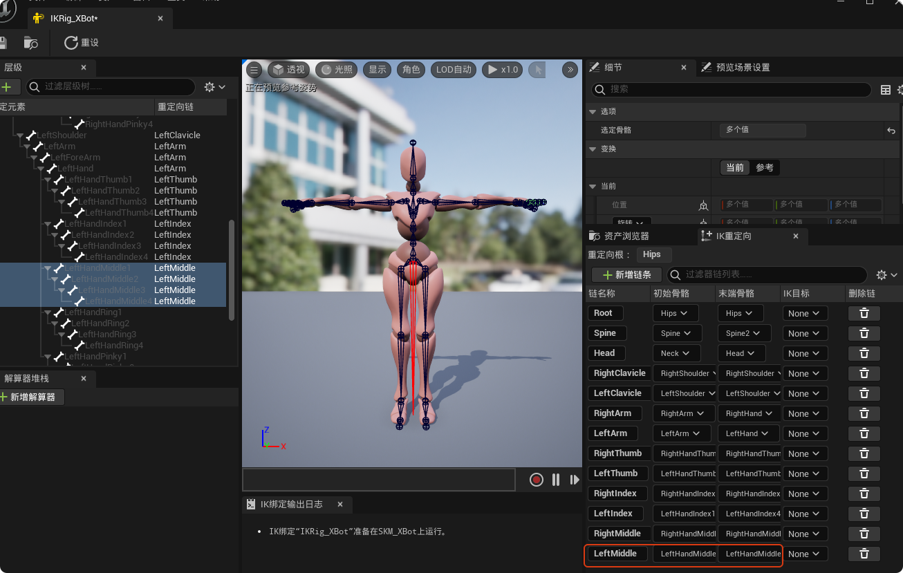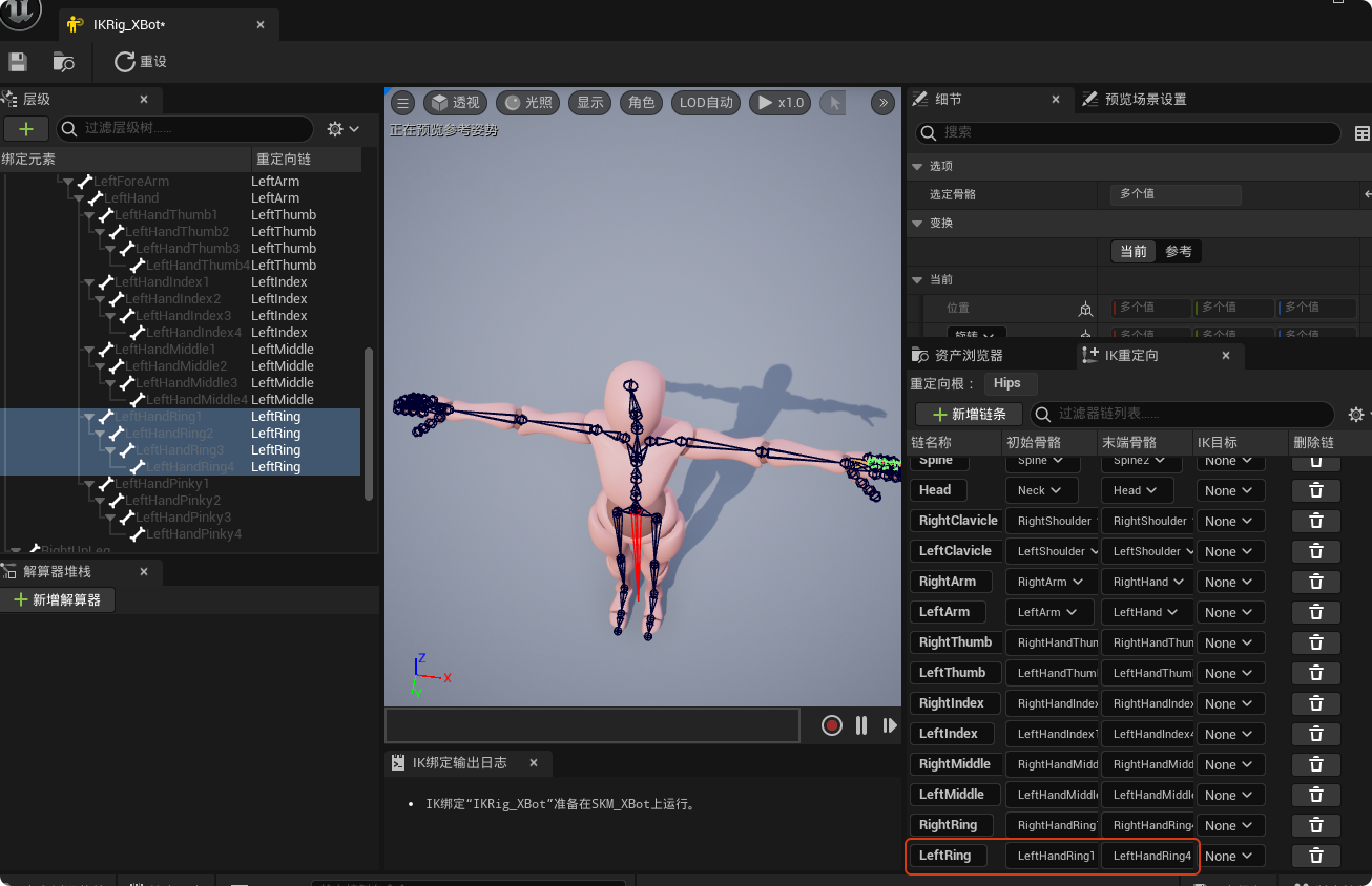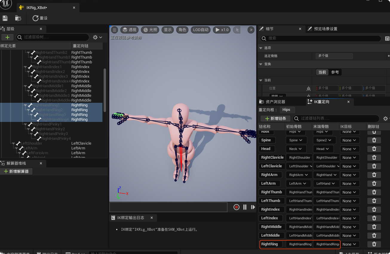 打开"IKRig_XBot",预览骨骼网格体选择"XBot"