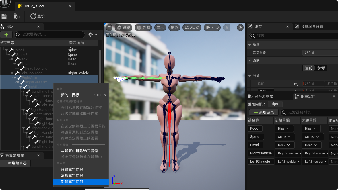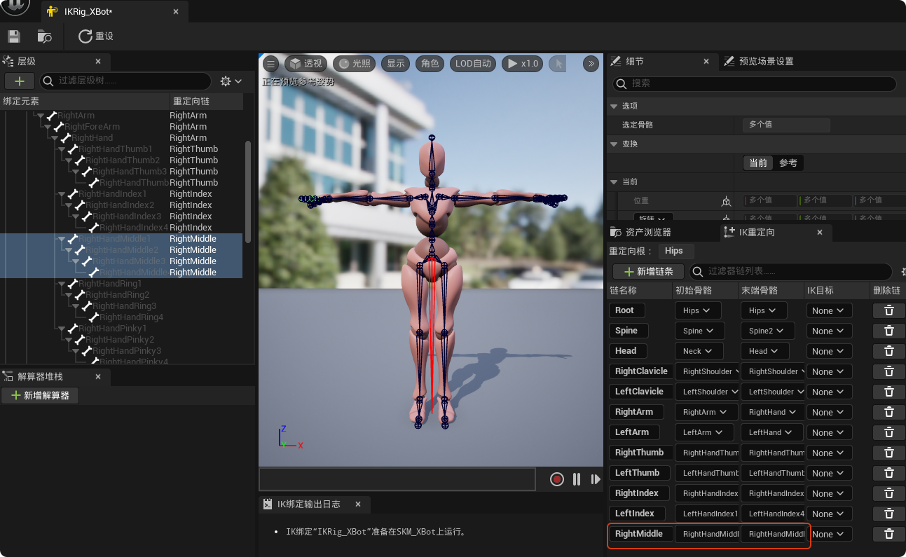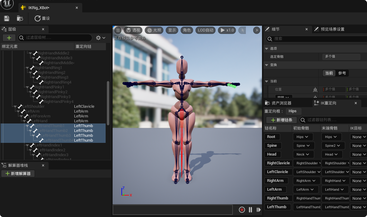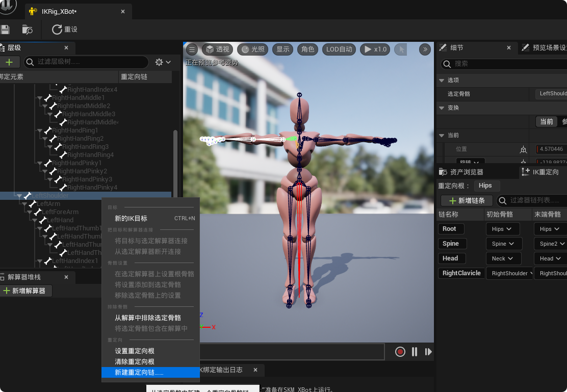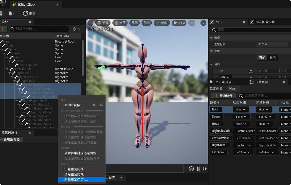 打开"IKRig_XBot",预览骨骼网格体选择"XBot"