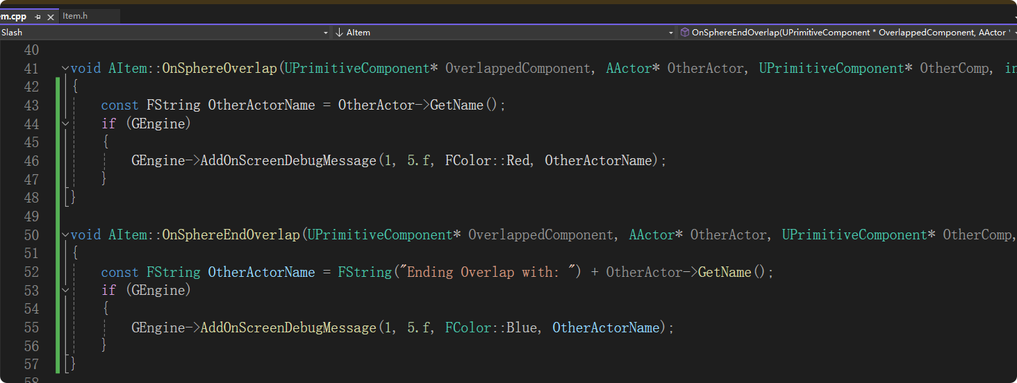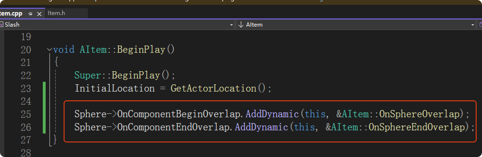 Sphere->OnComponentBeginOverlap.AddDynamic(this, &AItem::OnSphereOverlap);