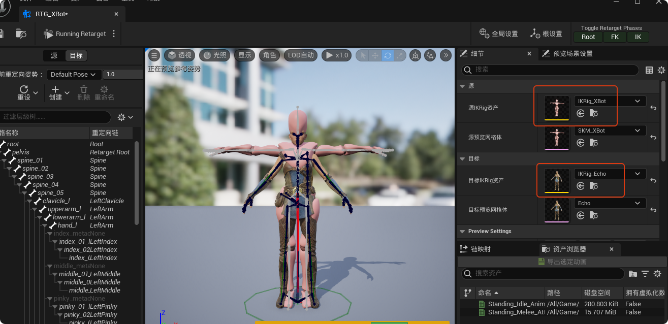 打开"RTG_XBot",设置源IKRig资产为"IKRig_XBot",设置目标IKRig资产为"IKRig_Echo"