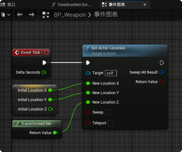 为了让剑产生上下浮动效果,需要在蓝图中添加如下节点