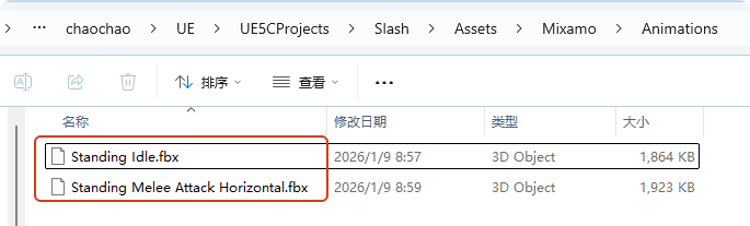 在Mixamo中下载动画资源,这里先下载持剑站立和攻击的动画