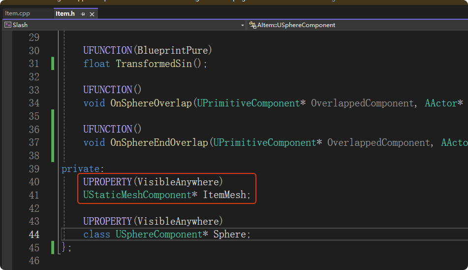 Sphere->OnComponentEndOverlap.AddDynamic(this, &AItem::OnSphereEndOverlap);