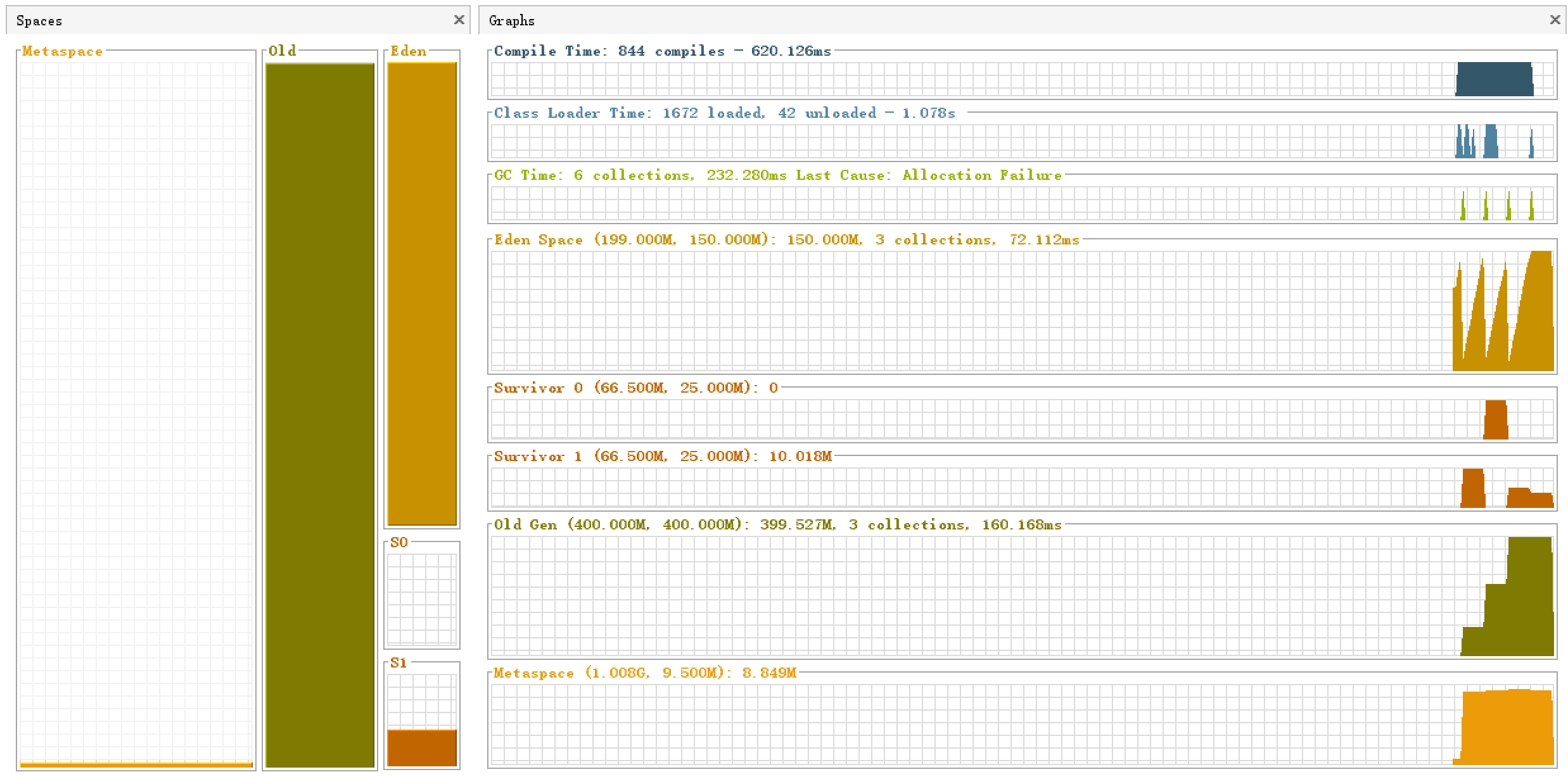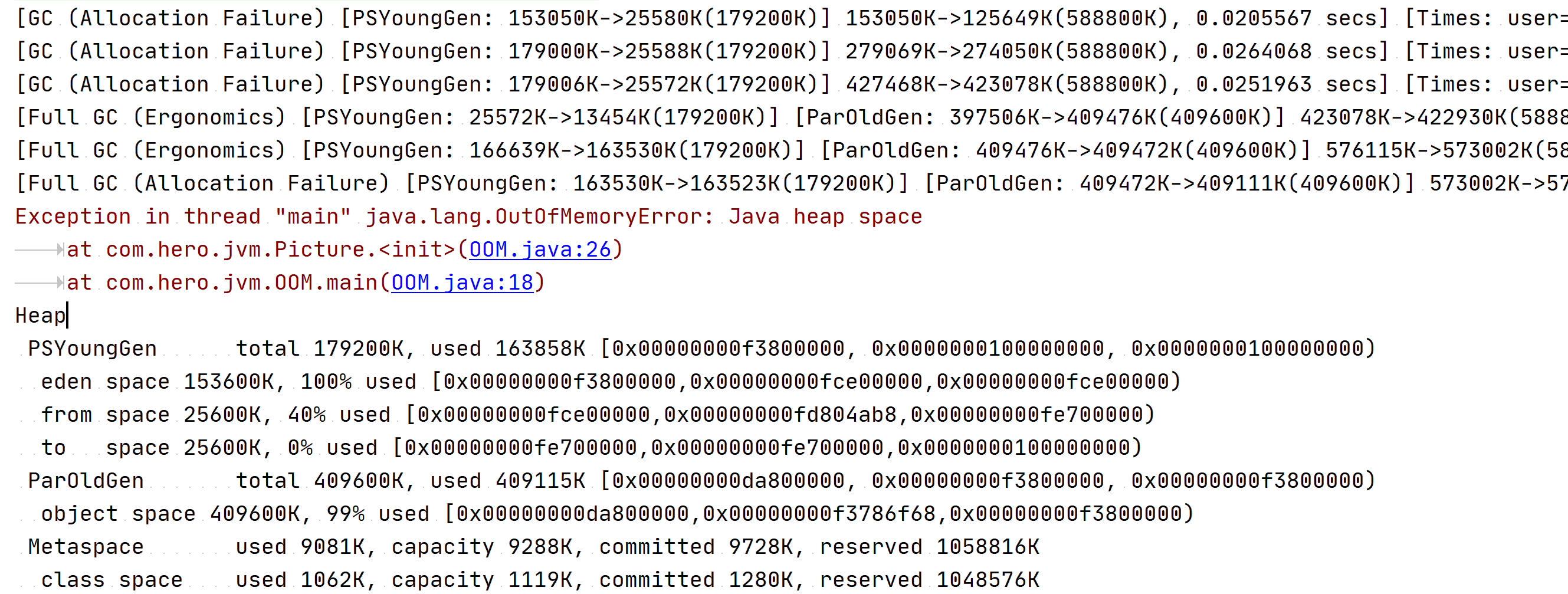 - 老年代也满了之后,发生了三次MinorGC,未释放出可用空间后,进行了三次FullGc最后抛出了OOM