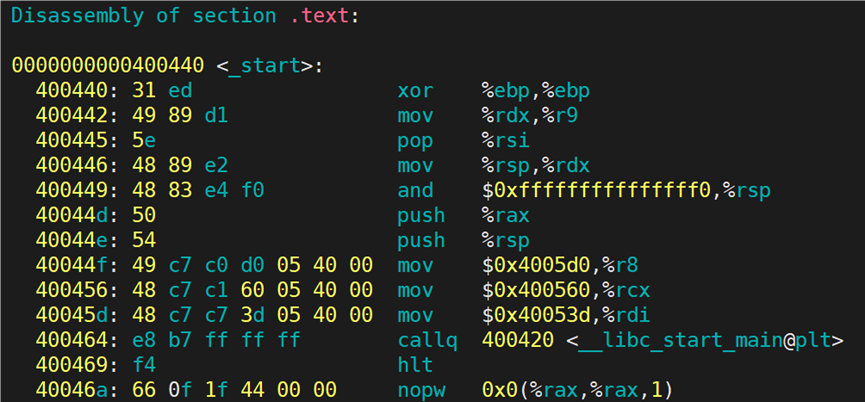 从上图可以看出,_start 函数会调用<libc_start_main> 函数: