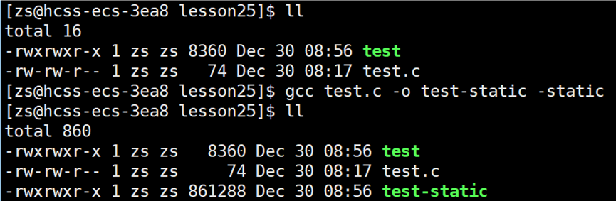 C/C++ 程序使用 gcc/g++ 编译链接时,默认使用的就是动态链接。如果想要强制程序使用静态链接,需要在指令的后面加上 -static。