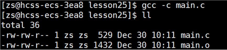 上述操作是将所有的 .c 文件一次性的直接编译链接形成可执行程序,接下来演示将所有的 .c 文件经过编译后形成 .o 文件,再将所有的 .o 文件链接形成可执行程序。推荐使用这种方式形成可执行程序。