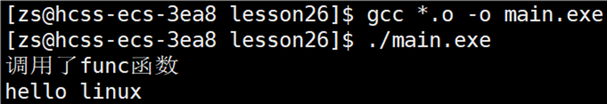 将 main.c 和 func.c 文件编译成 .o 文件,将所有 .o 文件链接形成可执行程序: