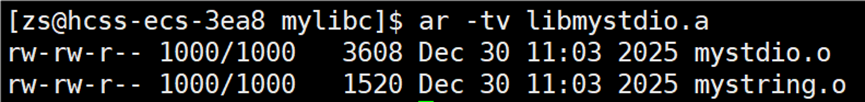 t 选项:列出静态库中的文件;v 选项:显示文件的详细信息。