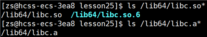 可以查看系统安装的C语言动态库和我们安装的静态库: