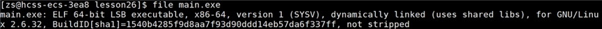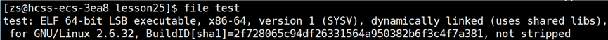 进一步的确定 test 可执行程序链接的就是动态库,使用指令:file 可执行程序名: