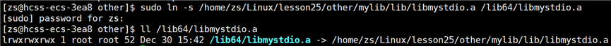 报错显示在 /usr/bin/ld 路径下找不到 mystdio 库文件,这是因为 OS 默认查找库时,只会在 lib64 目录下查找,如果想要链接我们实现的静态库,需要告知编译器我们实现的静态库的位置,使用选项:-L库所在的路径(-L 与 库所在的路径之间可以有空格,但是建议写在一起)