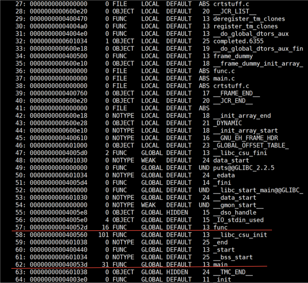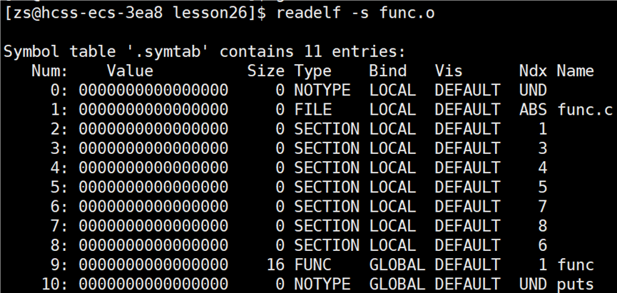 func.o 文件中符号表的信息: