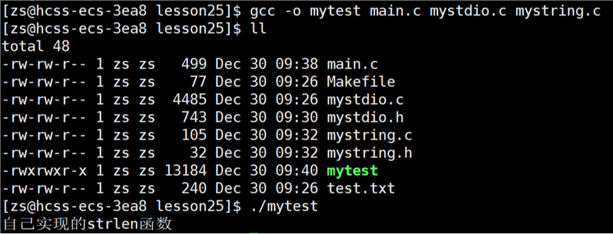 将 main.c,mystdio.c,mystring.c 全部编译链接形成一个可执行程序: