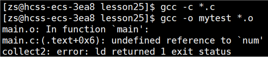 找不到变量num,由此可以知道上述的错误是在链接时发现的。