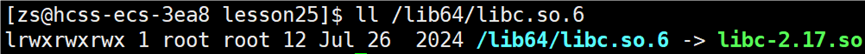 /lib64/libc.so.6 实际上是软链接,它指向的是 libc-2.17.so: