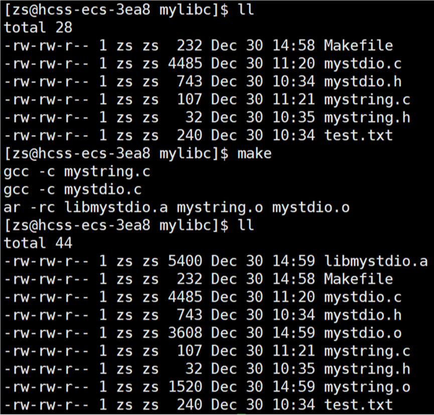 将自己实现的 .c 源文件,经过编译后形成的 .o 文件供他人使用,我们提供的 .o 文件不就是所谓的库文件的功能吗?静态库文件的本质就是 .o 文件,这也是为什么在链接时才会将库文件与 .c 源文件形成的 .o 文件链接在一起,链接就是将所有的 .o 文件链接在一起,在链接时库文件会一同被链接。