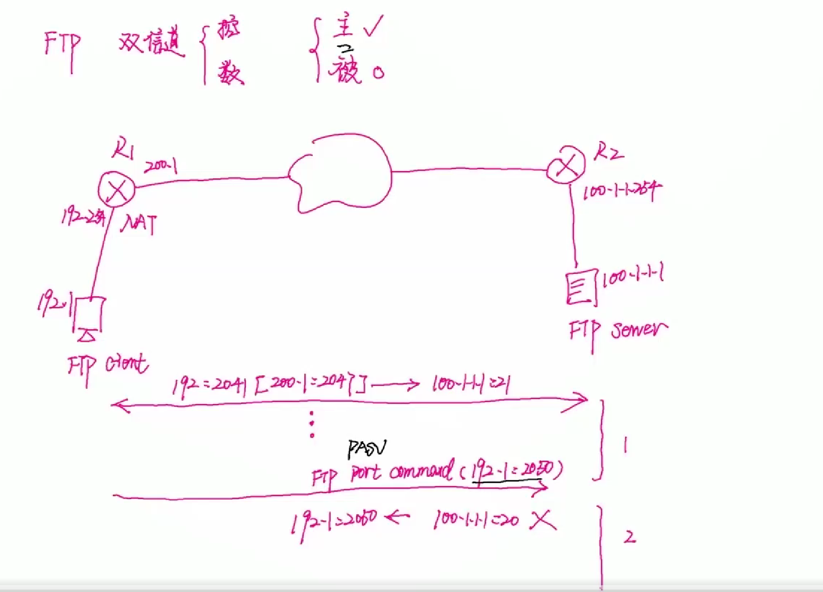 问题:FTP在主动模式下穿越NAT时为什么需要ALG,而被动模式不需要