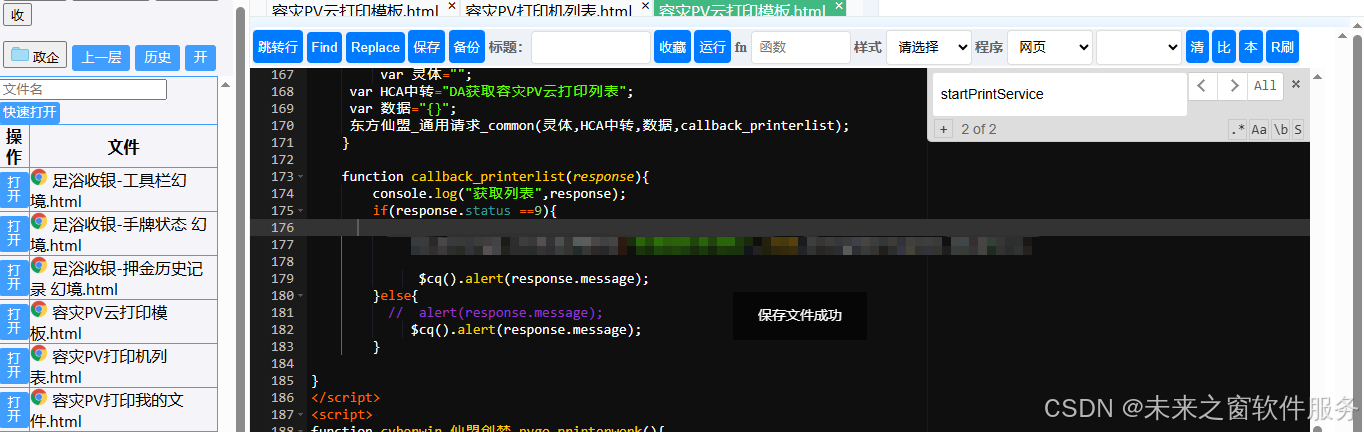 如果你的业务需要打印不同的单据模板,仅需修改一个地方,一行代码即可 ,位置在 仙盟符箓刻印() 函数中: