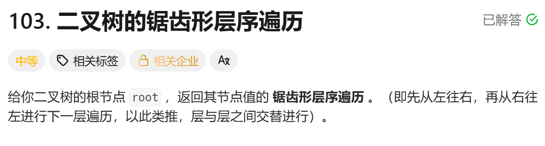 题目链接:https://leetcode.cn/problems/binary-tree-zigzag-level-order-traversal/description/