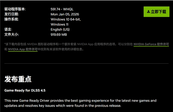 NVIDIA正式发布了GeForce Game Ready 591.74版驱动程序,核心功能便是全新的DLSS 4.5技术落地
