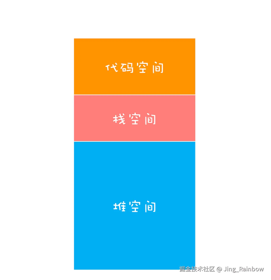 (内存空间结构图:代码空间、栈空间、堆空间)