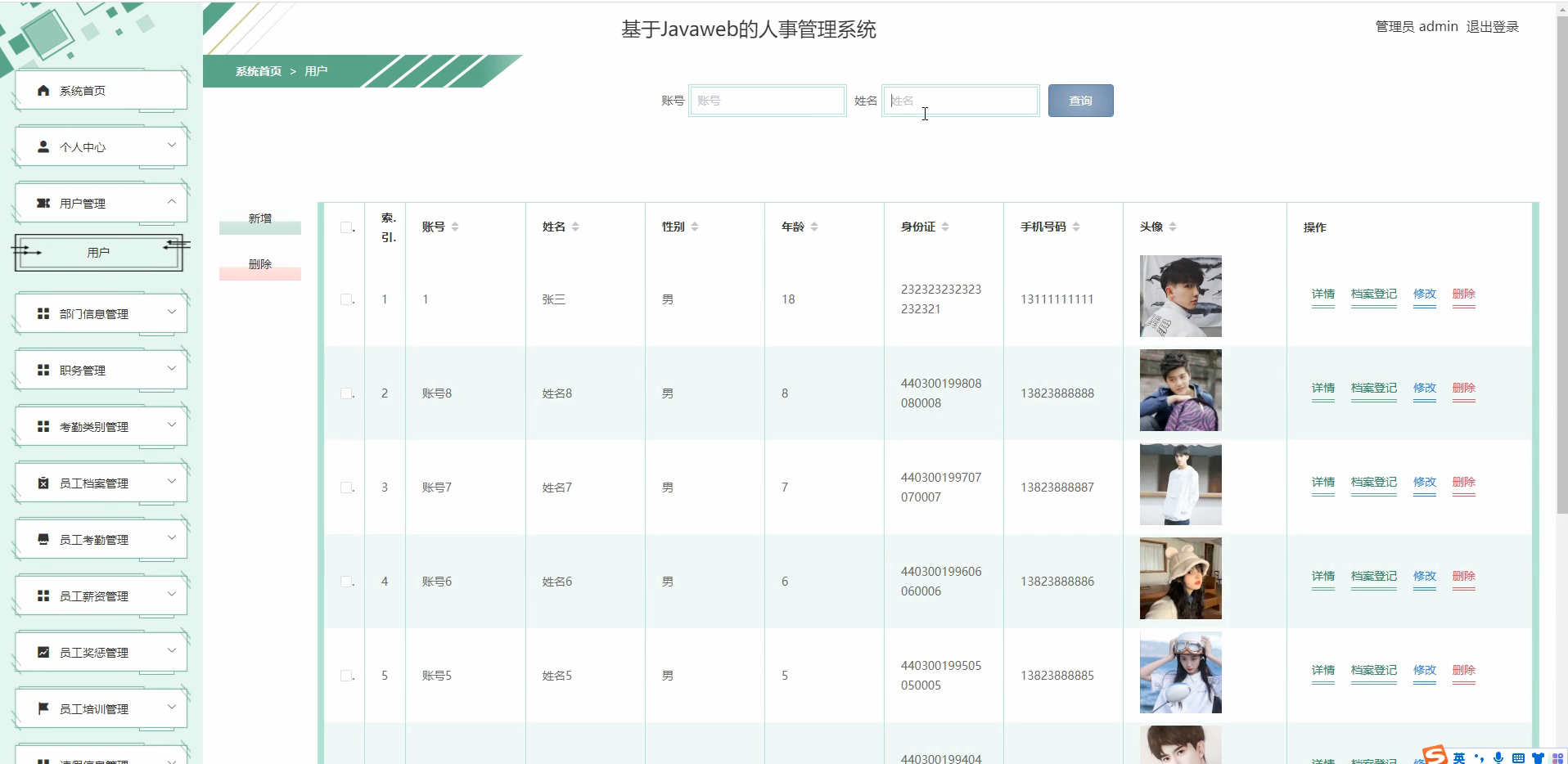 - 员工信息管理 :