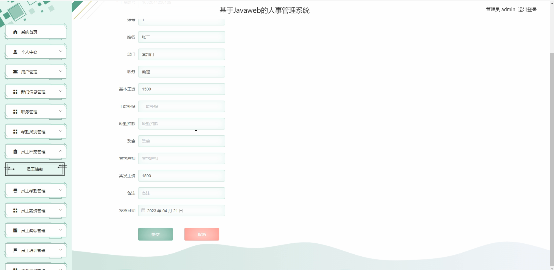 - 配置薪资模板(基本工资、绩效、奖金、扣款项),自动计算应发薪资。