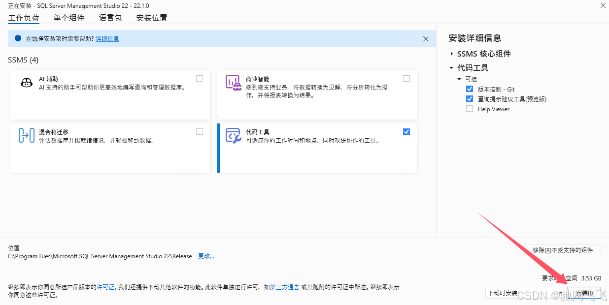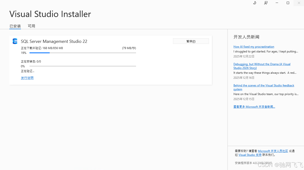 13、SQL Server 2025安装完成后,接着安装Management Studio,重新回到包文件夹,找到vs_SSMS.exe双击打开