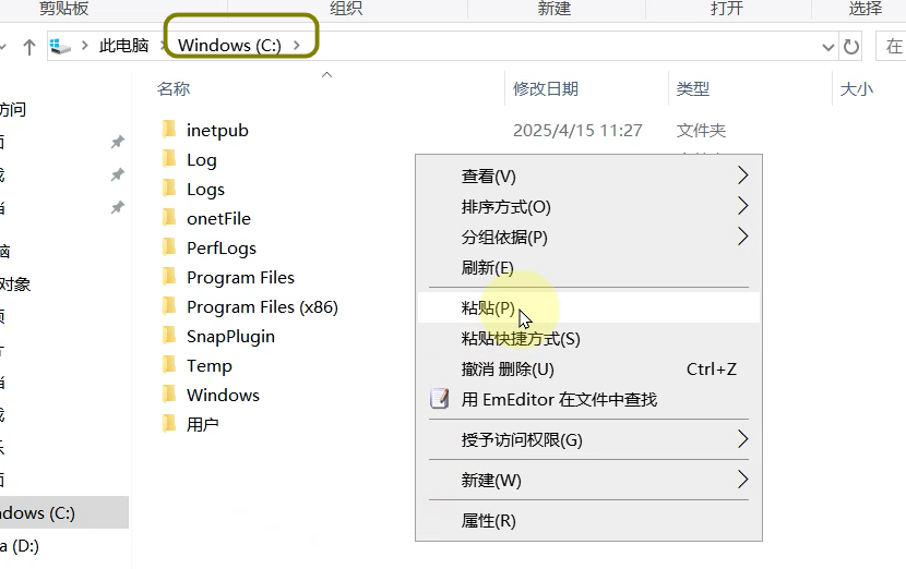 3、粘贴到c盘如图所示(若提示需要权限勾选"为所有当前项目执行此操作)点击继续