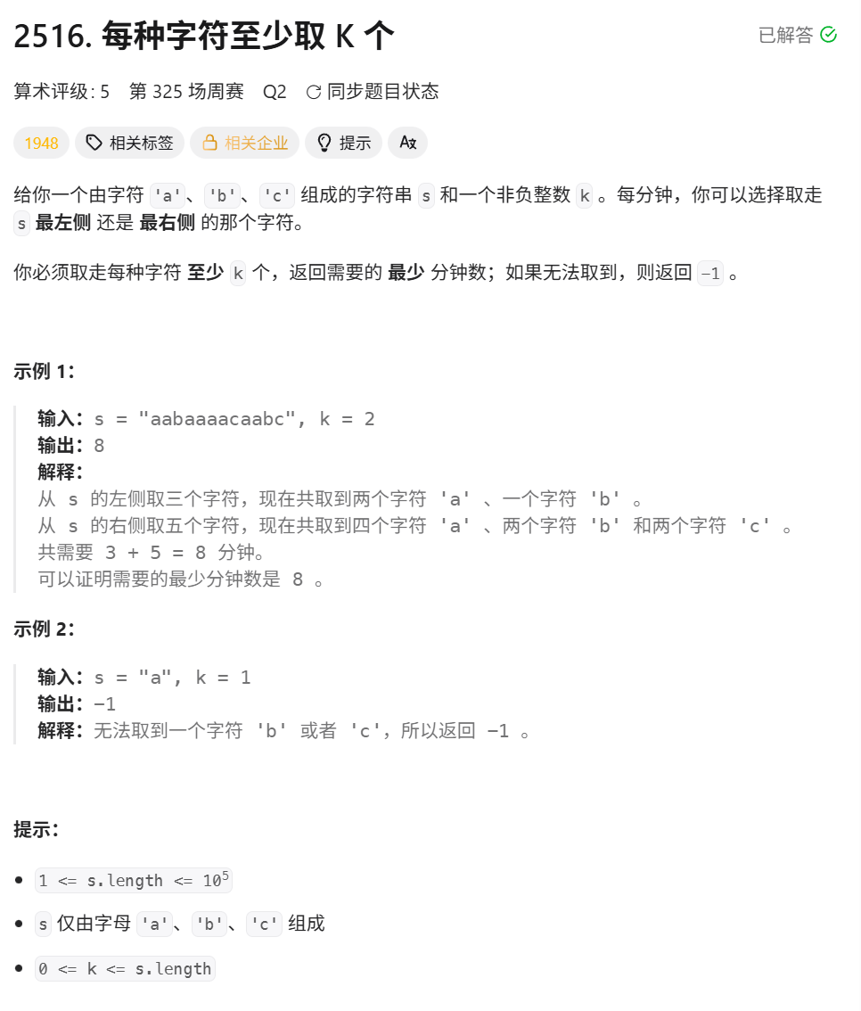 // 到这里[l, r]是不满足性质的,[l-1, r]才是以r为右端点的最短满足性质的子数组