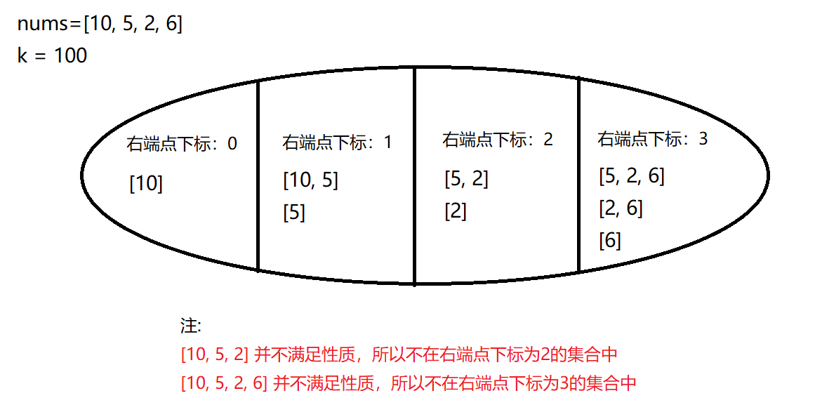 子数组性质:所有元素的乘积 < k < k <k。
