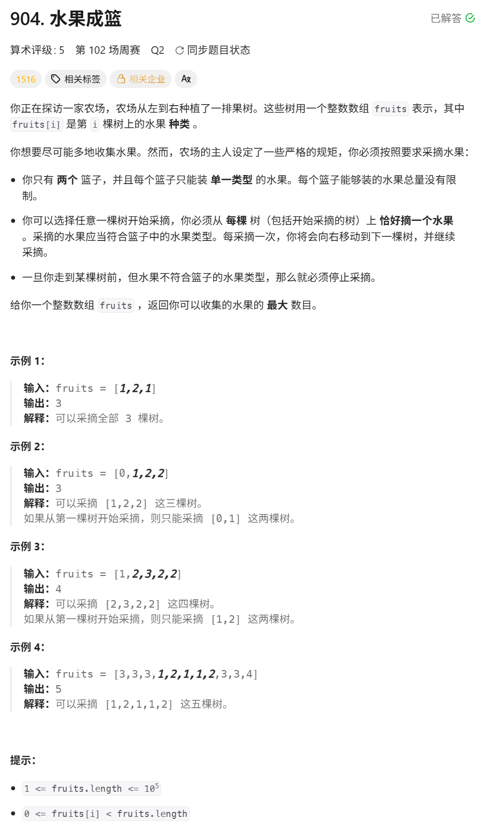 题目链接:904. 水果成篮