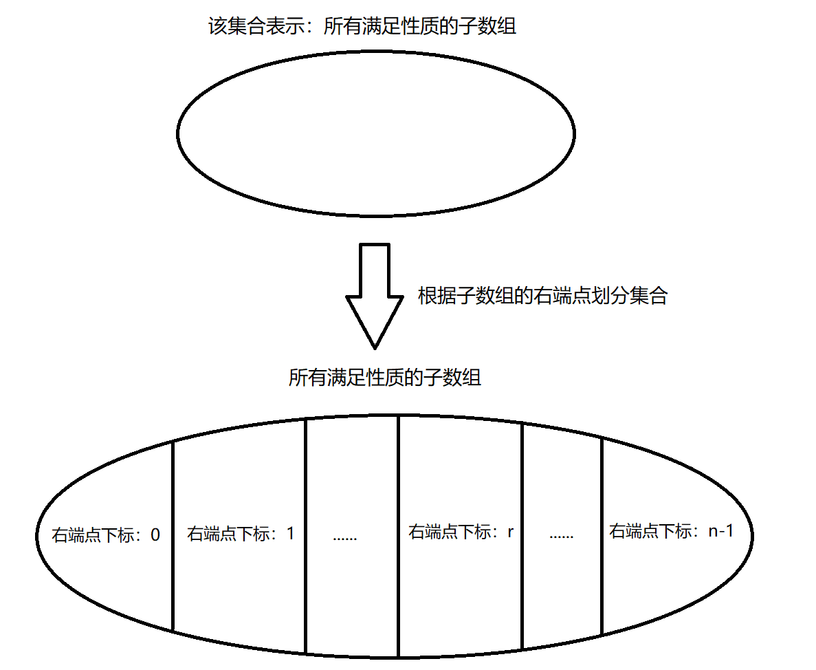 更新答案时, [ l , r ] [l, r] [l,r] 是以 r r r 为右端点的所有子数组中,满足性质 且长度最长 的那个。(若 l > r l > r l>r, 说明以 r r r 为右端点的所有子数组中,没有满足性质的)