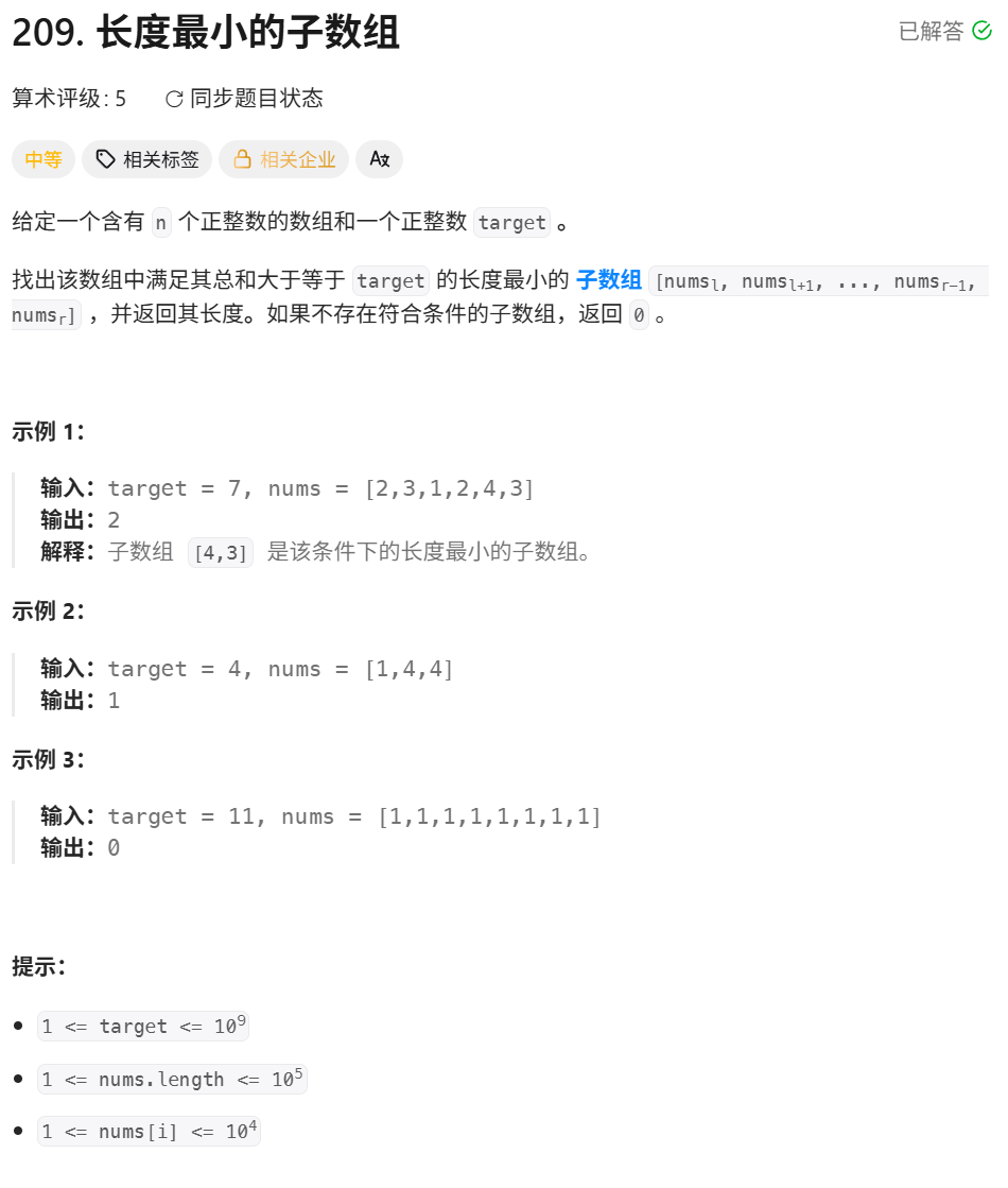 - 求最短满足性质的子数组直接用专题二的模板即可。