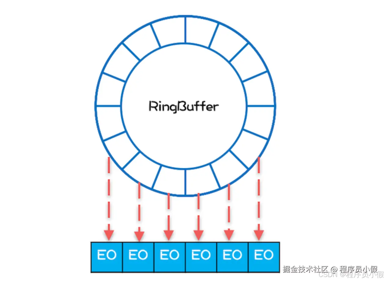 Event)在初始化时就全部创建好,并被重复使用。这消除了 GC 压力。 - 通过取模运算(实际是高效的位运算,要求数组大小为2的幂次)实现环形覆盖,指针无限递增,永不回收。