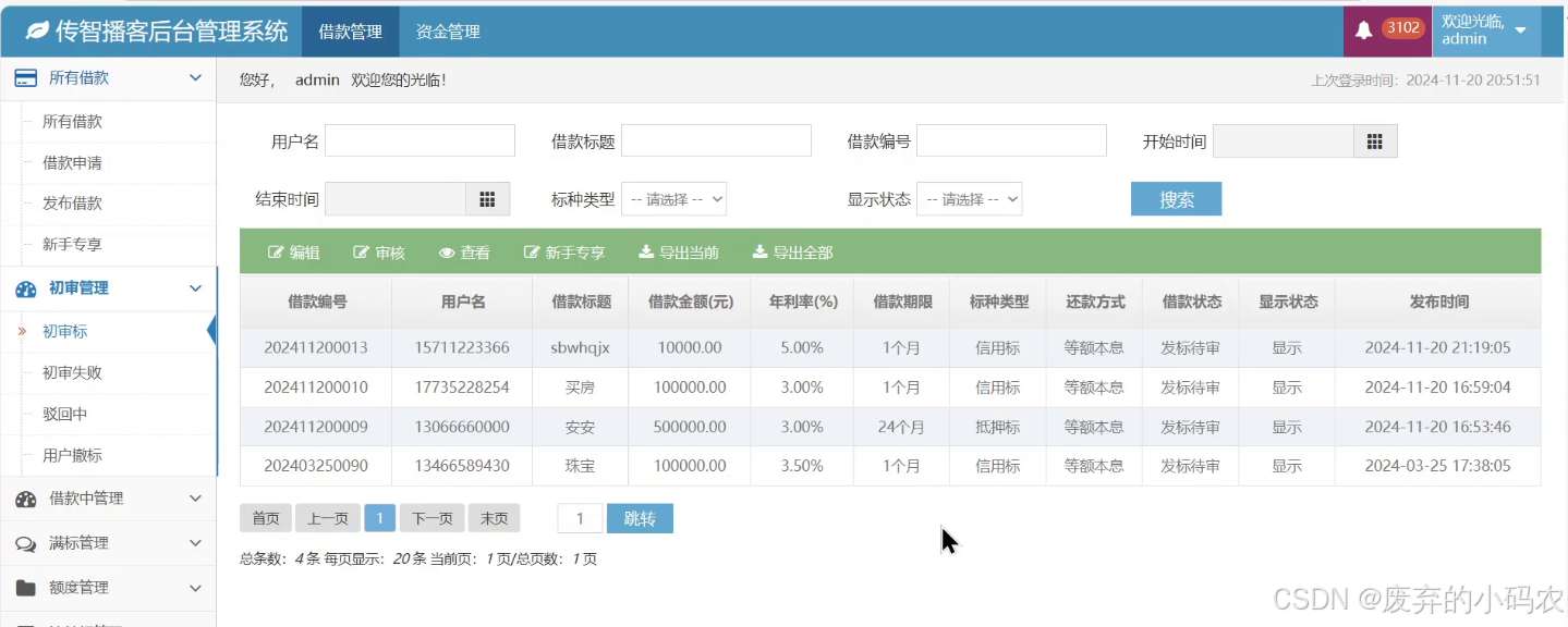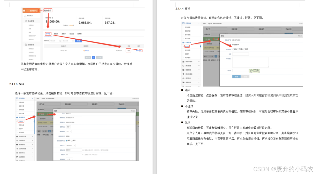 覆盖核心模块:用户注册、信用评估、贷款审批、资金流转、还款管理、对账系统等。