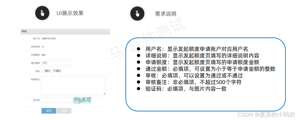 | credit_verify_002 | 页面显示信息正确性验证 | 额度申请审核模块 | P3 | 1. 审核员登录成功 2. 额度审核列表中存在待审核的记录 | 1. 进入额度申请审核页面 2. 检查页面标题、字段标签、提示信息等文本内容 | 无 | 所有显示文本与需求一致,无错别字或歧义 |