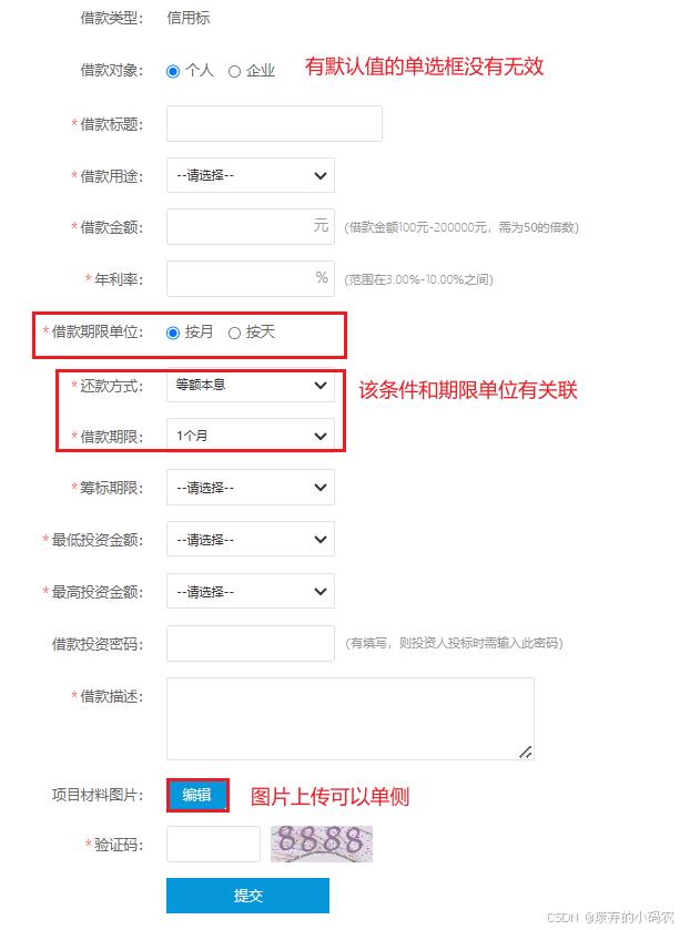 借款期限单位:按月、按天和后续条件还款方式和借款期限有关联,因为需要考虑关联关系