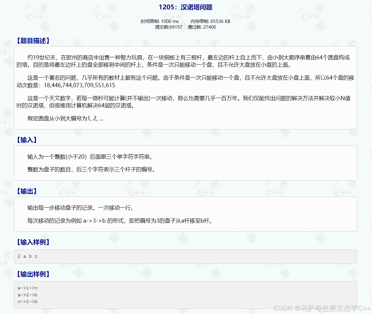 注意,本题是逻辑推导,不需要用真实的数组记录每个杆上的盘子状态,因为汉诺塔的递归解法是 "逻辑上的步骤推导",而非 "物理上的状态模拟"------