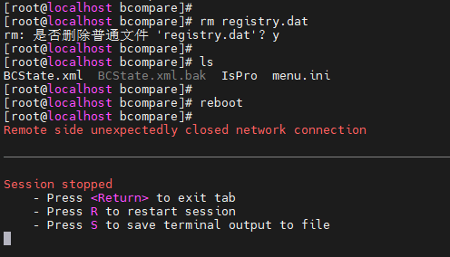 删除registry.dat文件,再通过reboot命令重启Linux: