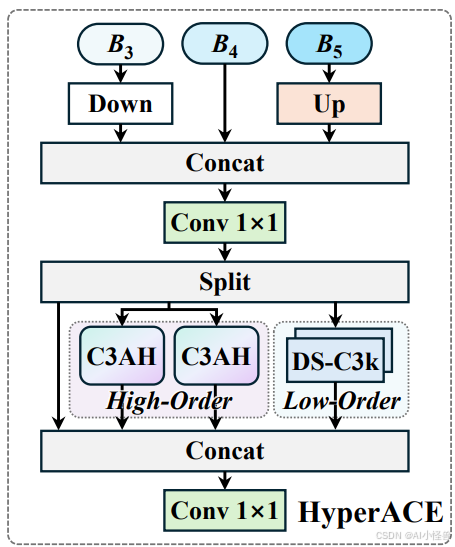 超图理论借鉴与创新 :借鉴超图理论,将多尺度特征图的像素视为超图顶点,不同的是,传统超图方法依赖手工设定参数构建超边,而 HyperACE 设计了可学习的超边生成模块,能自适应地学习并构建超边,动态探索不同特征顶点间的潜在关联。