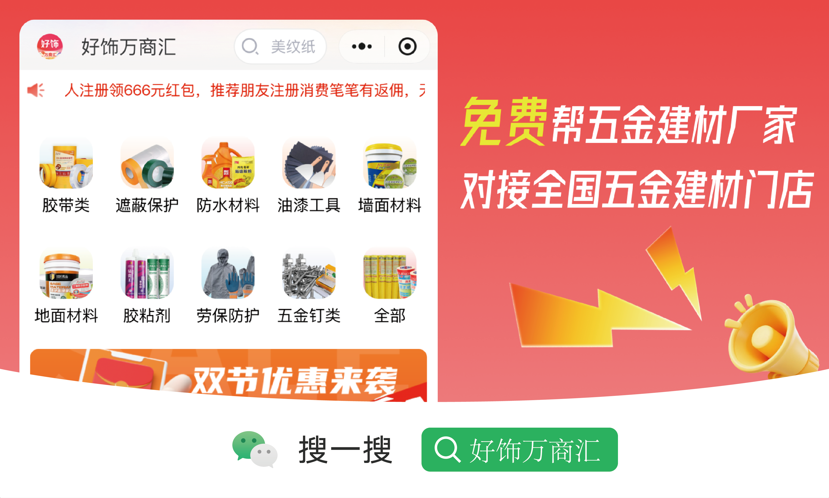 要快速触达分散的社区终端,"好饰万商汇" 成为厂家不可忽视的数字化抓手。作为专注服务行业的五金建材门店一站式采购进货平台 ,已覆盖全国超10万家建材门店、社区服务点与施工队。五金建材厂家加入后,可: