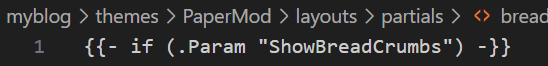 上述方式需要用户手动实现面包屑功能,适合一定基础,并且想实现高度自定义的用户,这里 PaperMod 已经提供了一个面包屑模板 breadcrumbs.html,下面来分析 PaperMod 提供的这个模板,路径在 PaperMod/layouts/partials/breadcrumbs.html
