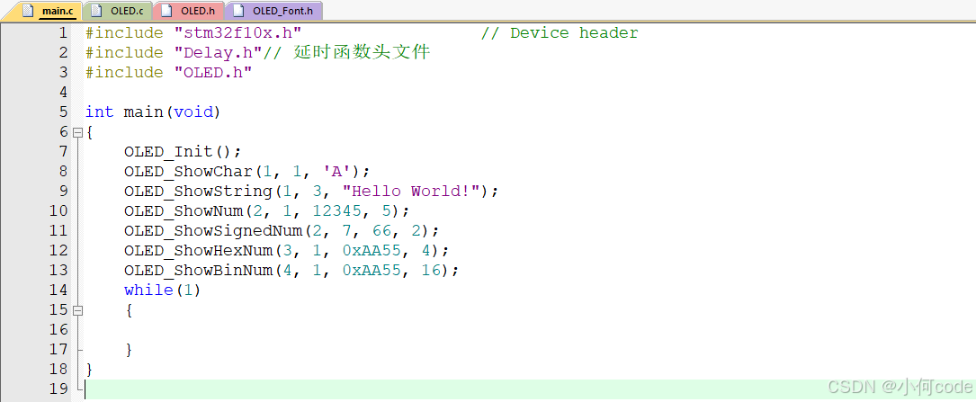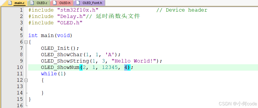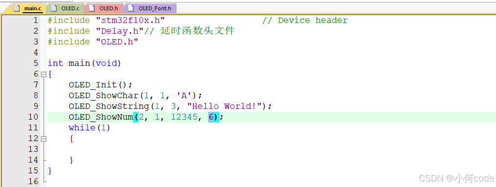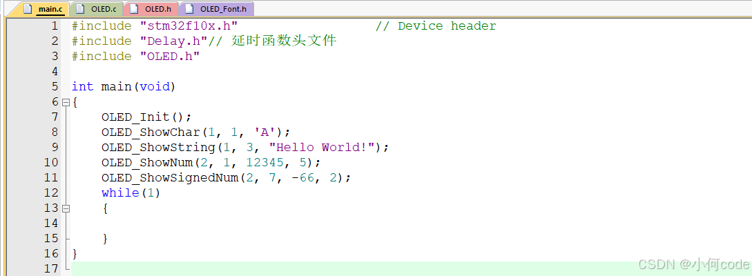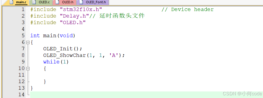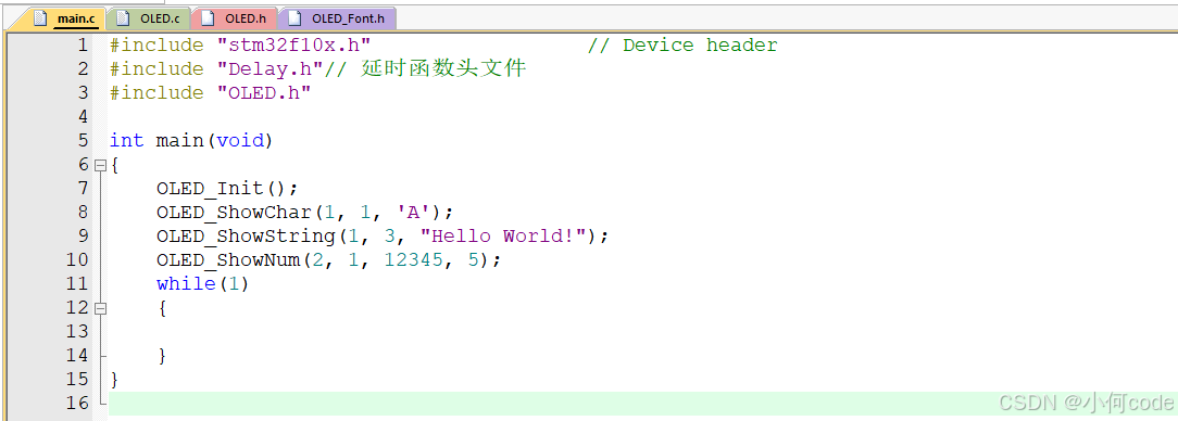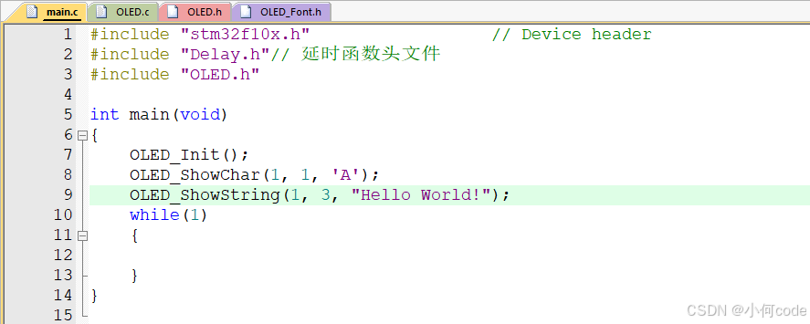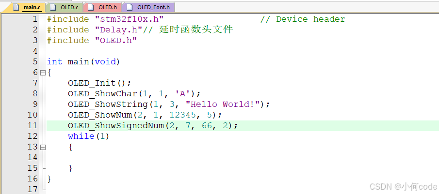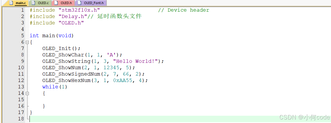 (1)main.c上面先加上:#include "OLED.h"。