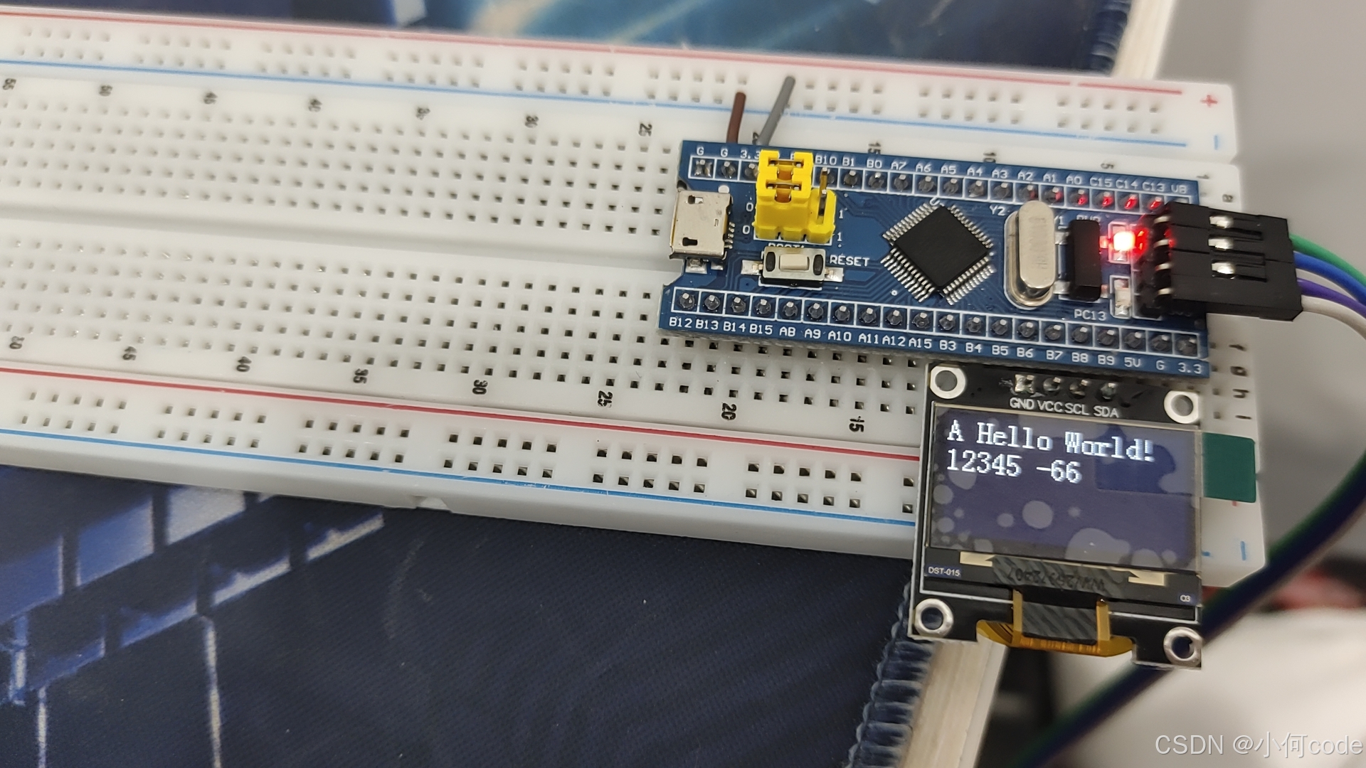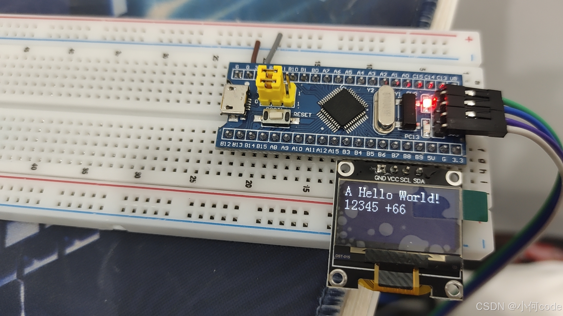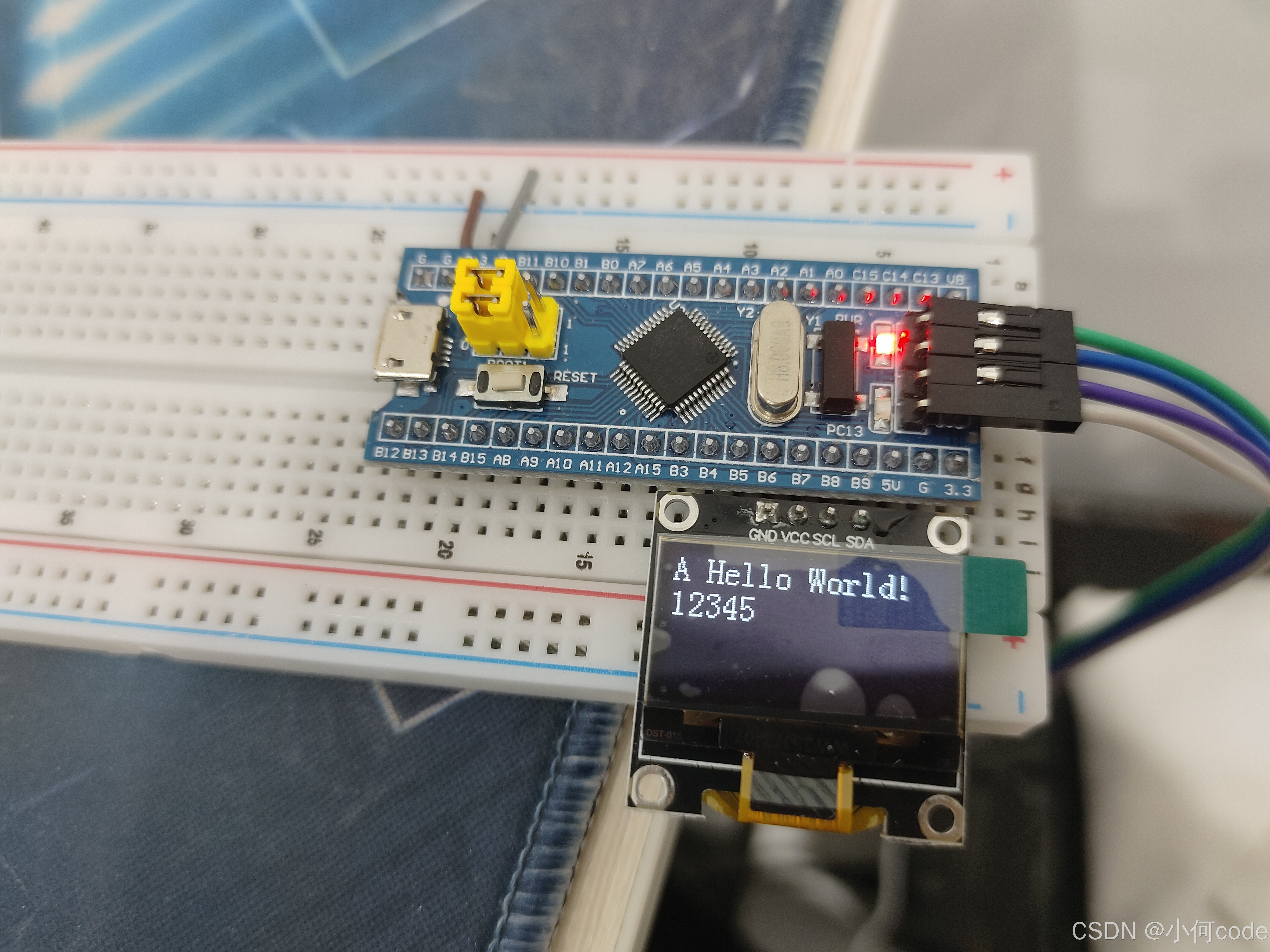 然后拿出OLED屏幕,插到PB6到PB9的这四个孔里,这样就完成了。