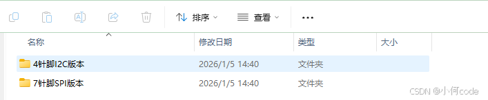 在【STM32Project】中打开【1-4 OLED驱动函数模块】。里面有两个版本,一个是【4针脚I2C版本】,另一个是【7针脚SPI版本】。
