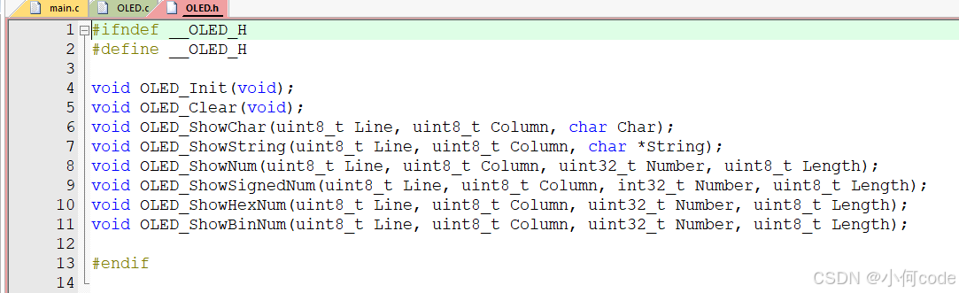 OLED.h文件里面是外部可调用函数的声明。