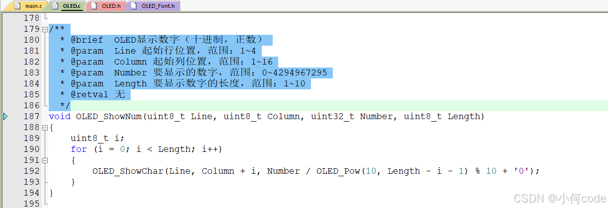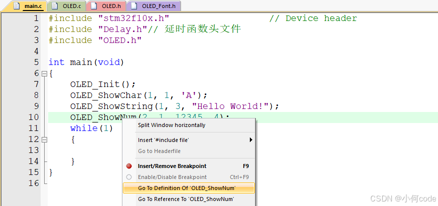 这就是显示无符号十进制数字,这个只能显示无符号数。右键OLED_ShowNum转到定义。